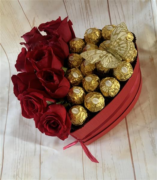 Pull out all the stops with the ultimate Hatbox, including Gorgeous Fresh Red roses and Ferrero Rochers.